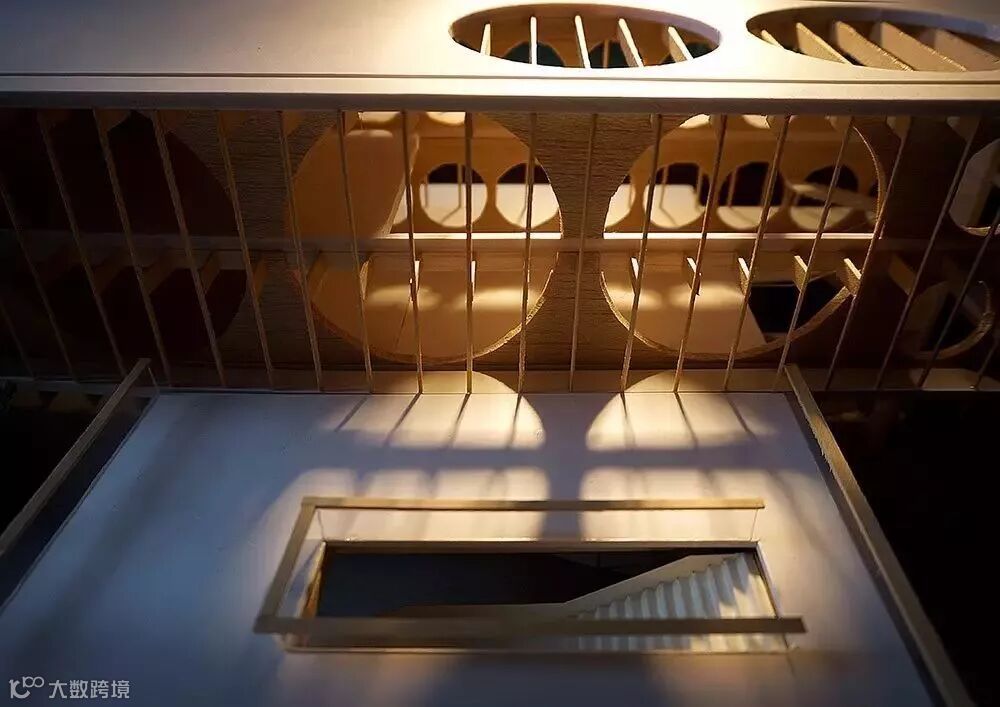 学校不应该是孩子们的象牙塔,更应被真实的城市看到。为了城市里的人能够看到这些,更使得孩子们能够相互看到,所以建筑尽量透明。并不是真的全是玻璃的那种透明,而是类似透过大树看天空的感觉,一层层叠加孔洞与通道,半遮半掩,产生向往。为了加强这种深邃的吸引感,墙体做成了圆形,或虚或实的圆形叠加在一起。