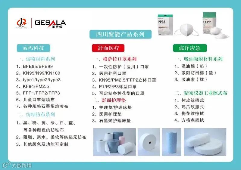 四川索玛新材料是一家集高性能熔喷/纺粘非织造新材料及制品、PLA非织造纤维材料、石墨烯医用新材料和核防护新材料研发、生产、销售、服务为一体的国际化科技公司、综合性国家级高新技术企业和四川省“专精特性”中小企业,产品先后出口30余个国家和地区