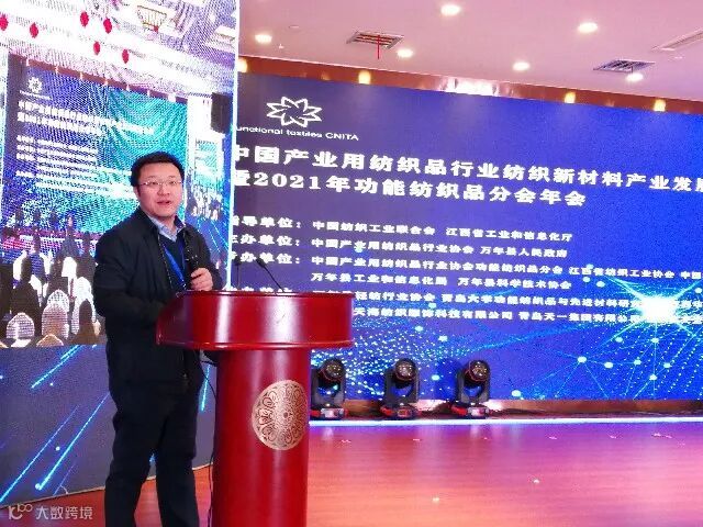 为推动功能纺织品及功能纺织新材料的发展,围绕行业发展形势、机遇和挑战,共探企业创新发展之路,12月20日“中国产业用纺织品行业功能纺织新材料产业发展论坛暨2021年中产协功能纺织品分会年会”在江西省万年县召开。四川聚能滤材有限公司董事长卢林受邀参加出席。本次会议以共话功能纺织新材,勇担健康防护使命为主题。