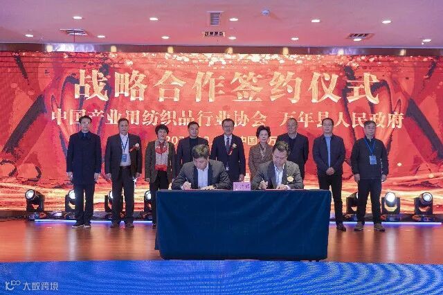 万年县纺织产业签约仪式,签约仪式分2批进行。第一环节中国产业用纺织品行业协会副会长段守江、万年县人民政府副县长李锦春先生签订战略合作协议。