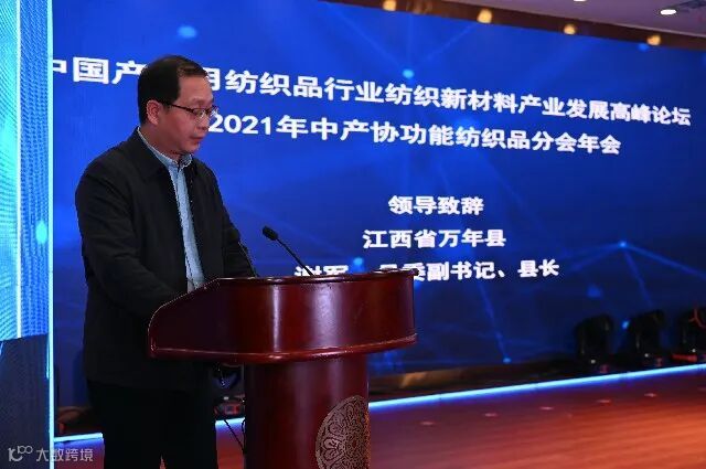 万年县委副书记、县长谢军表示,纺织新材料产业,是万年的主导产业之一,跻身全省重点工业产业集群,万年县高新区被中国纺织工业联合会授予“全国纺织产业转移示范园区”称号,2020年主营收入突破170亿元,占全部工业营业收入的40%强,现已经初步形成从纺织到成品的完整产业链。他说,本次论坛必将在功能纺织材料领域增添浓墨重彩的一笔,也必将对推动万年纺织产业的高质量发展产业。