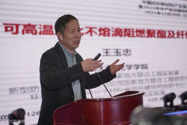 中国工程院院士、四川大学教授王玉忠作了“可高温炭化不溶滴阻燃聚酯及纤维”主题报告。王玉忠指出,传统阻燃方法存在溶滴问题,这也是阻燃领域长期未解决的国际难题。他说,通过分子设计,在聚酯大分子链中引入可高温自交联基团,使共聚酯在高温或燃烧温度下快速发生快速“化学交联”,进而炭化,从而实现不溶滴和高阻燃性的目标,并且热释放速率和烟密度都显著下降。