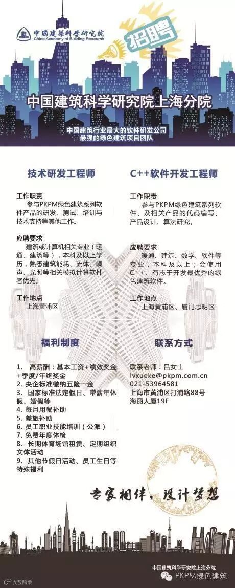 建筑或计算机相关专业(暖通、建筑等),本科及以上学历,熟悉建筑能耗、流体、噪声、光照等相关模拟计算软件者优先。