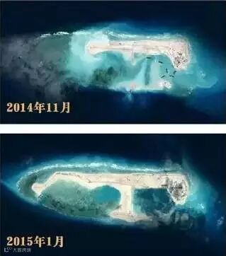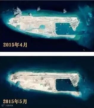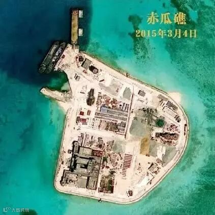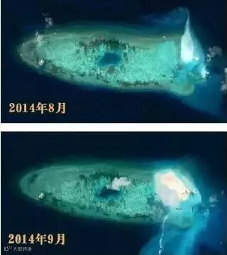 举个例子,永暑礁这本来是南海中一个普普通通的暗礁。所谓暗礁呢,就是涨潮时就没了,退潮时才能露出来一点点。