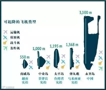 那这个机场有多大呢,跑道长度3.3公里,这又是什么概念呢,首都机场3条跑道,分别为4.03km/3.74km/3.07km,也就是说永暑岛的跑道可以起降任何飞机。这当然包括我们大阅兵时候看到的轰6K。