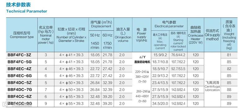排气量(380V/3~/50Hz):18.05m³/h到32.48m³/h特点:体积小、质量轻、高效、节能、环保运行可靠适用于各种高中低温工况