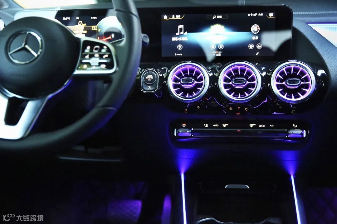 归途中,车载音响飘出一曲香颂《La Vie en Rose玫瑰人生》,64色氛围灯营造出迷人的浪漫氛围。2022款GLA SUV全系标配的LED高性能大灯,照明效果出色,确保夜间行车安全,以犀利目光守护安心归途。