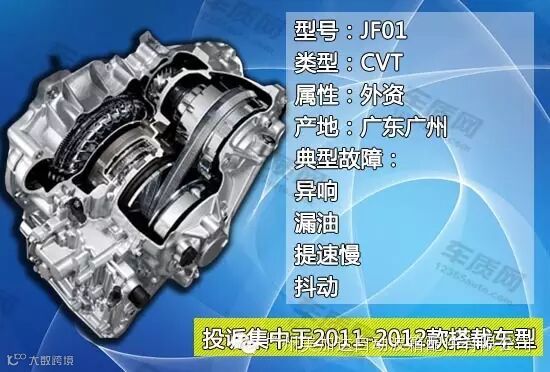 据证实,JF01型号变速箱为广东广州Jatco变速箱供应商生产的CVT无级变速箱,其主要投诉问题集中在JF011E及JF010E型号中。实际上,JF01型号变速箱故障问题由来已久,早在2010年厂家便发布过召回公告,原因主要是因为车辆长时间高负荷行驶的情况下,会引起CVT无级变速器油温升高,CVT无级变速器进入保护模式。目前,消费者反映的问题主要为在冷启动时变速箱出现异响及提速慢等问题,厂家对此解释为“冷保护”。据知情人士透露,所谓的“冷保护”其实并非是变速箱的特性,而是厂家都很难解释清楚的设计问题。如果液力变矩器在不锁止的状态下行驶,传动效率会大大降低,就等同于手动变速箱的半离合状态,这也就解释了为何消费者反映发动机转速达到2000rpm以上车速才到60km/h,且松开油门D挡滑行不减速等问题的出现。目前,厂家并未对次出台相应的解决方案,消费者只能通过长时间行驶或者二次启动来解决。