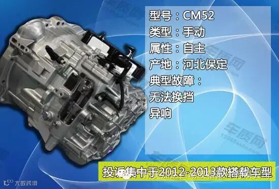 据了解,CM52型号变速箱由位于河北保定的工厂生产,目前无法换挡及异响问题较为凸显。从目前了解到的情况看,低速行驶挂一、二挡时会有很强的顿挫感,同时会出现打齿响。将车辆停稳后有时无法直接挂入一挡,消费者反映情急之下只能挂二挡后退回一挡来解决问题。除此以外,变速箱异响问题同样较为明显,空挡怠速时变速箱会有规律的沙沙声,当踩下离合后异响消失。此前有消息称,整车厂家针对换挡问题采取了更换换挡机构的方式解决,但收效甚微。据知情人士透露,厂家曾陆续推出CM52B、CM52C及CM52D三个型号的变速箱,目前有消费者在换CM52D型号变速箱和离合器三件套(N8)后异响问题得以解决,具体原因或为变速箱内部出现打齿,导致齿轮异常磨损。