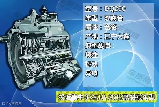 据了解,DQ200型号变速箱在大连工厂生产,是最早在国内投产的双离合变速箱。但从接到的投诉来看,顿挫、抖动及异响问题却成为最典型的投诉故障。DQ200型号变速箱为7速干式双离合变速箱,其内部结构与手动变速箱相同,采用传统的齿轮传动方式,而投诉中所反映的顿挫、抖动及异响问题,实际上与变速箱内部机械构造并无关系,主要是与双离合换挡控制执行器有关。