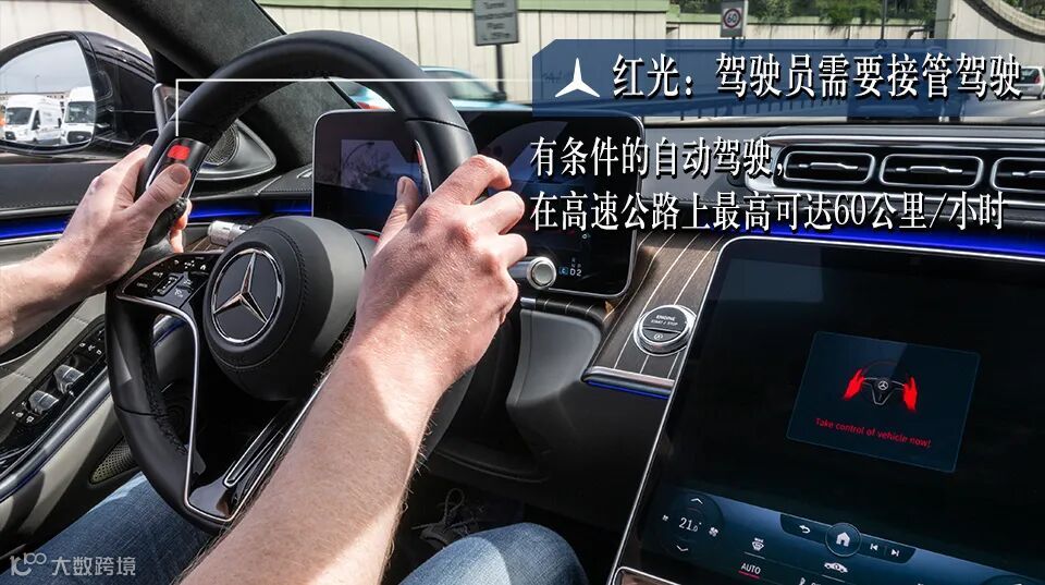 DRIVE PILOT驾驶领航系统的使用场景通常在交通拥堵路段,行驶速度60公里/小时及以下。在这样的路况及行驶速度下,有效的制动减速直至停下静止,不会给后续车辆带来麻烦。系统的自动制动将以比较舒适的、点刹式制动。一旦车辆停止,梅赛德斯-奔驰紧急呼叫系统将立即启动,汽车门窗自动解锁,方便救护人员进入。