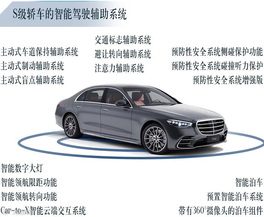 多年来,梅赛德斯-奔驰S级轿车在领先科技和豪华舒适性方面不断树立新的标杆,其搭载的驾驶辅助系统可以归纳为舒适性和安全性两个部分。舒适性相关的功能方面,诸如智能领航限距功能等,能够为车主带来豪华舒适的出行体验。安全性相关的功能和系统方面,一个非常重要的功能是防止车辆和其他道路使用者(包括行人、自行车以及其他车辆)发生任何碰撞事故。