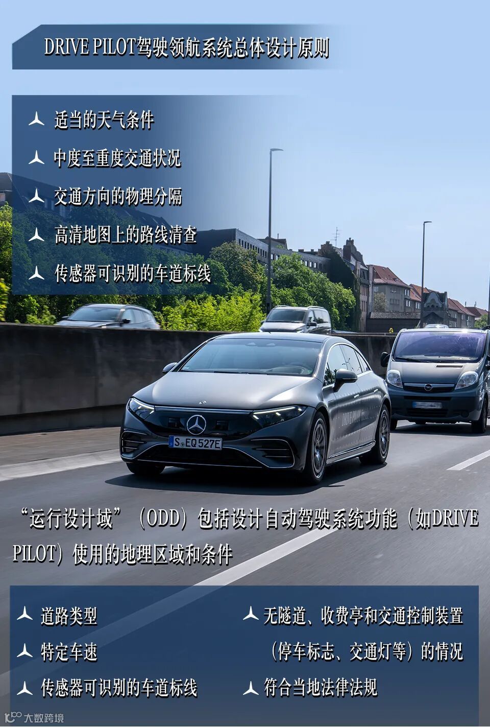 DRIVE PILOT驾驶领航系统的重要基础是运行设计域的建成(ODD: Operational Design Domain),清晰界定自动驾驶技术的工作条件。