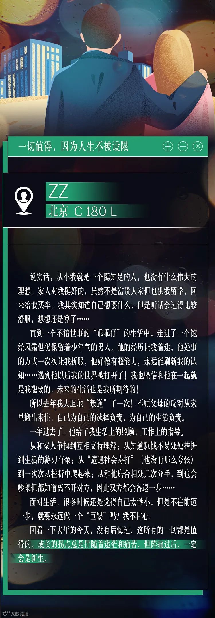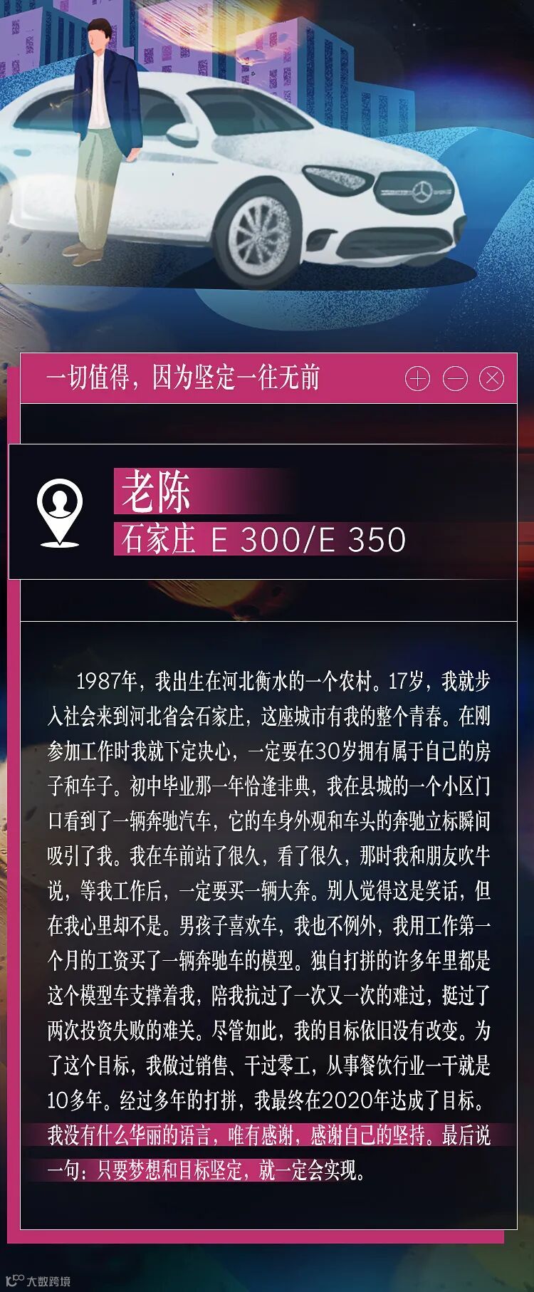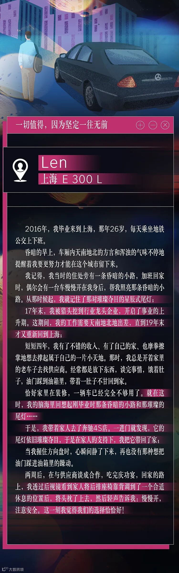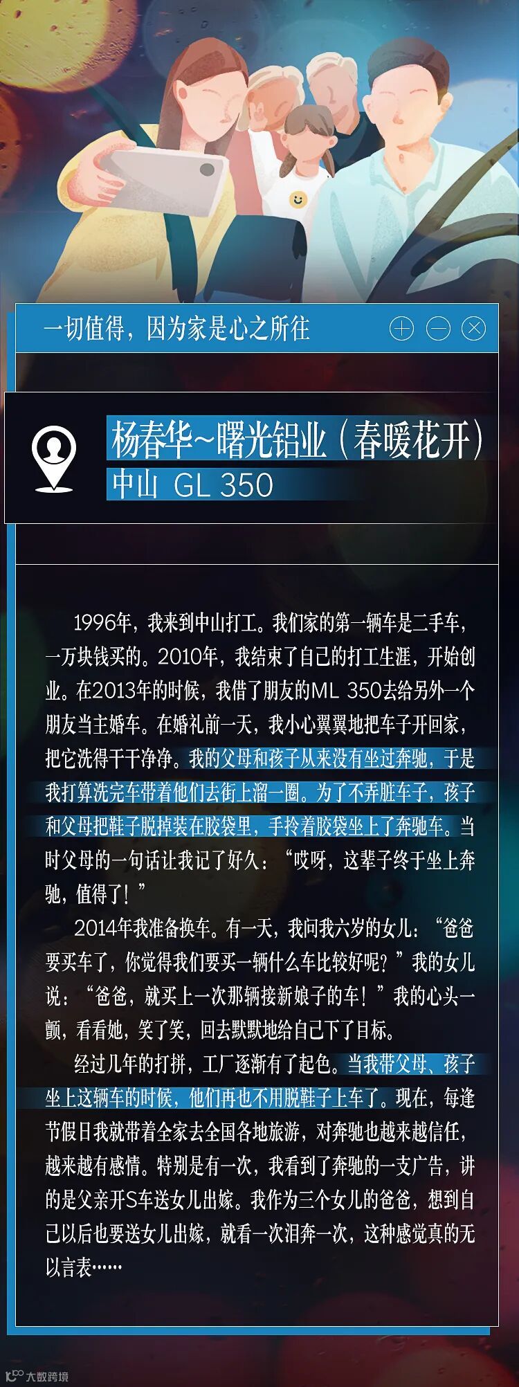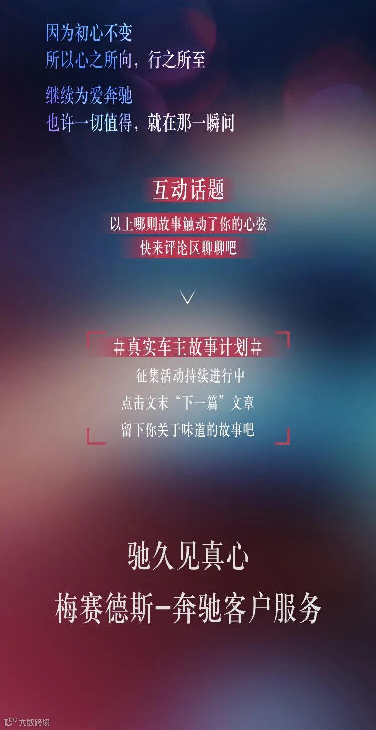 *正文中车主故事均来自“梅赛德斯-奔驰客户服务2022年真实车主故事计划征集活动”车主投稿,车主独立拥有该稿件表述故事中包含的所有元素的完整权利,包括且不限于故事内容、文案、图片、肖像及其他权利,车主同意并授权梅赛德斯-奔驰(中国)汽车销售有限公司及其关联企业使用上述内容。