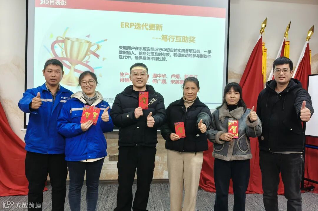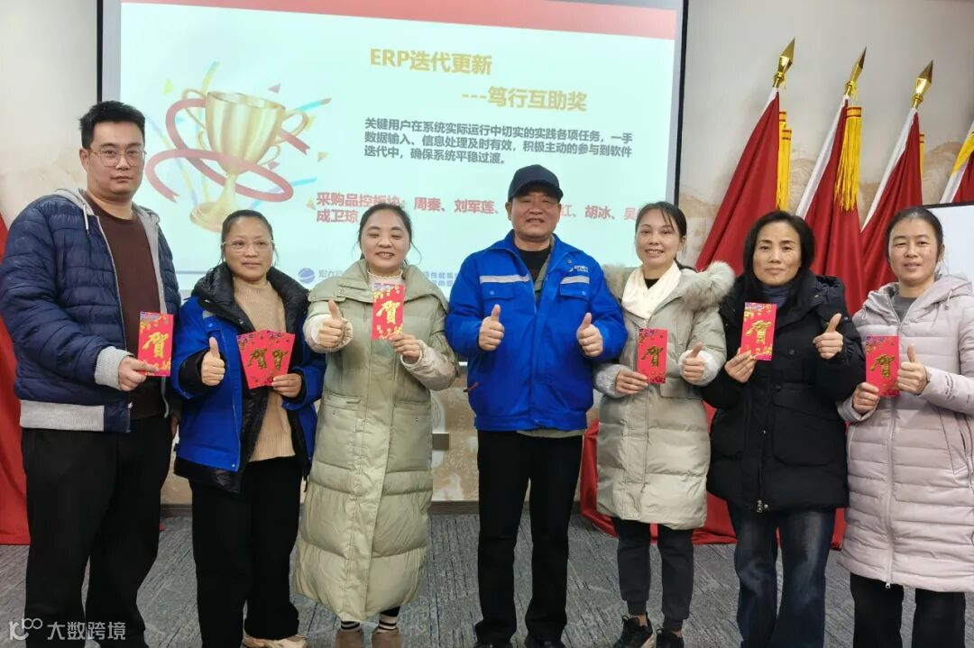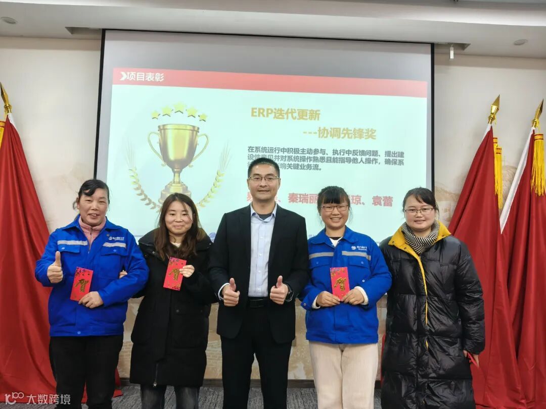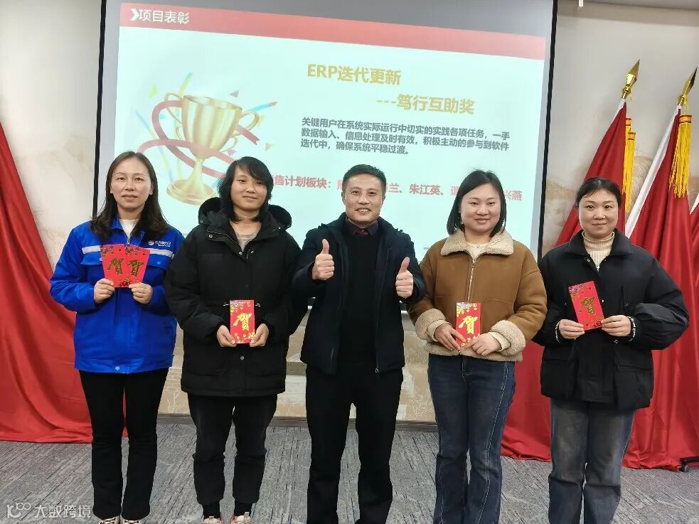 在项目推进过程中,关键用户在实际运行中切实的实践各项任务,一手数据及时的输入、信息处理及时有效,各部门积极配合,主动反馈问题和需求,积极推动项目,保质保量的完成软件更替,为表彰先进,大会颁发了ERP迭代更新“笃行互助奖”“协调先锋奖”“推进枢纽奖”,激励着大家在数字化转型升级的道路上奋勇前行。