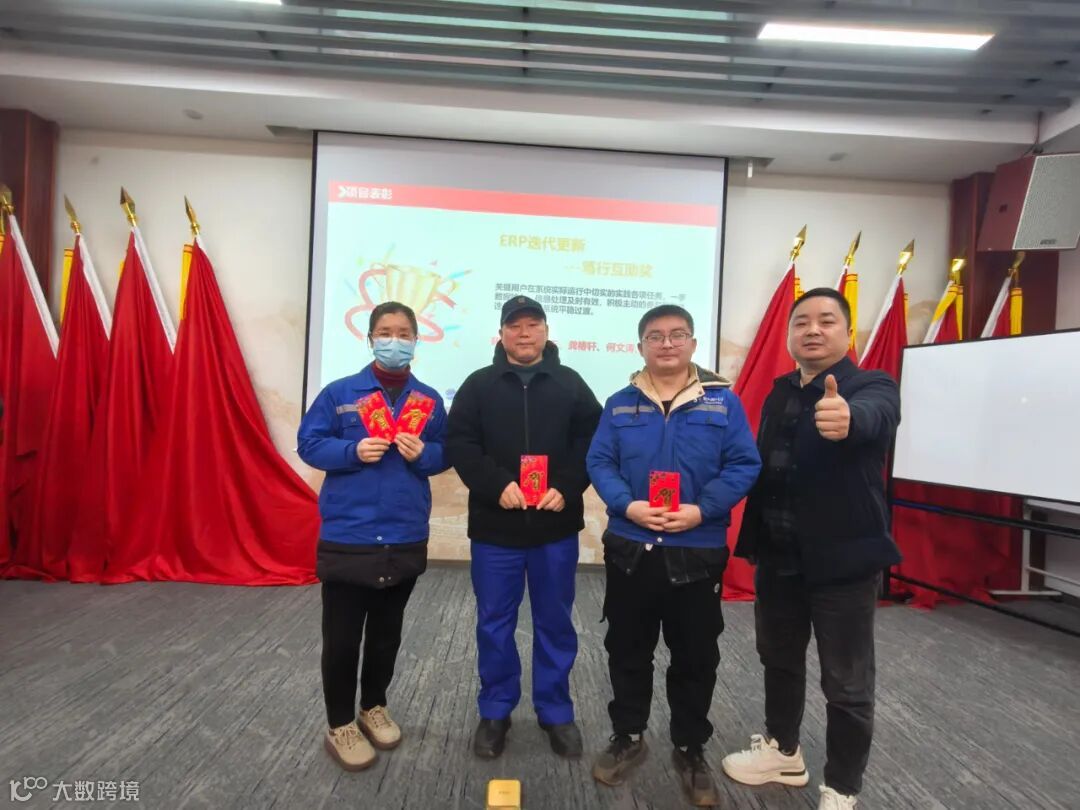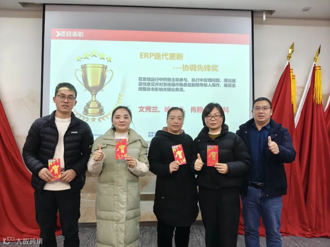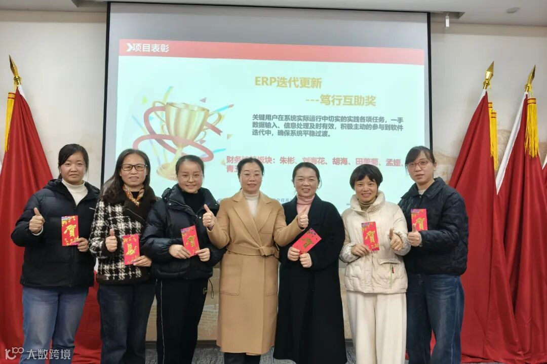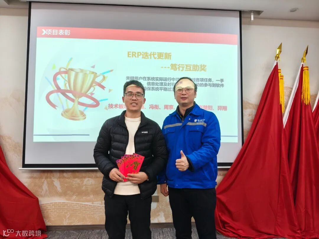 在项目推进过程中,关键用户在实际运行中切实的实践各项任务,一手数据及时的输入、信息处理及时有效,各部门积极配合,主动反馈问题和需求,积极推动项目,保质保量的完成软件更替,为表彰先进,大会颁发了ERP迭代更新“笃行互助奖”“协调先锋奖”“推进枢纽奖”,激励着大家在数字化转型升级的道路上奋勇前行。