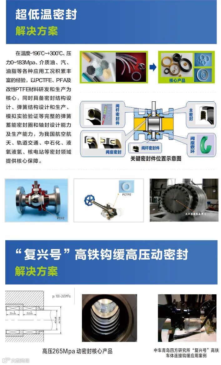 公司自成立至今,一直致力于研究高性能含氟塑料,经过30年的深耕细作,先后开发出含氟塑料模压成型和挤出成型工艺技术,在不同应用领域打破了国外技术封锁,填补了国内空白。公司的主导产品在耐超低温超高压PCTFE制品和耐高温耐强腐蚀超纯含氟材料制品的成型制备工艺上填补了半导体、天然气、液氧、液氮、液氢、核工业、石油化工、航空航天、新能源汽车等应用领域的短板。并成为中石油、中石化、中国中车、纽威阀门、德国肖特、韩国LG等知名企业核心配套供应商。