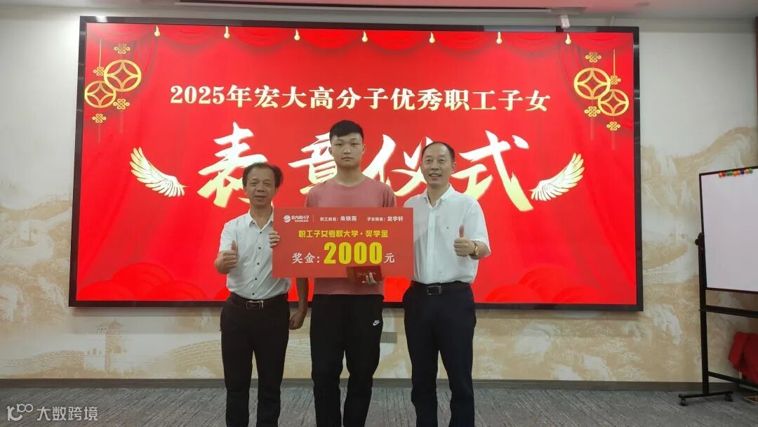 优秀子女不仅是家长的骄傲,也是公司的骄傲。宏大高分子的每一位员工都是公司发展的基石,子女成才是每一个家庭的荣耀。公司一直以来非常重视企业文化的打造,为员工的物心双幸福而努力,为优秀职工子女表彰和颁发奖励,这即是肯定学子们的努力,也是感谢职工们在岗位上的辛勤奉献。