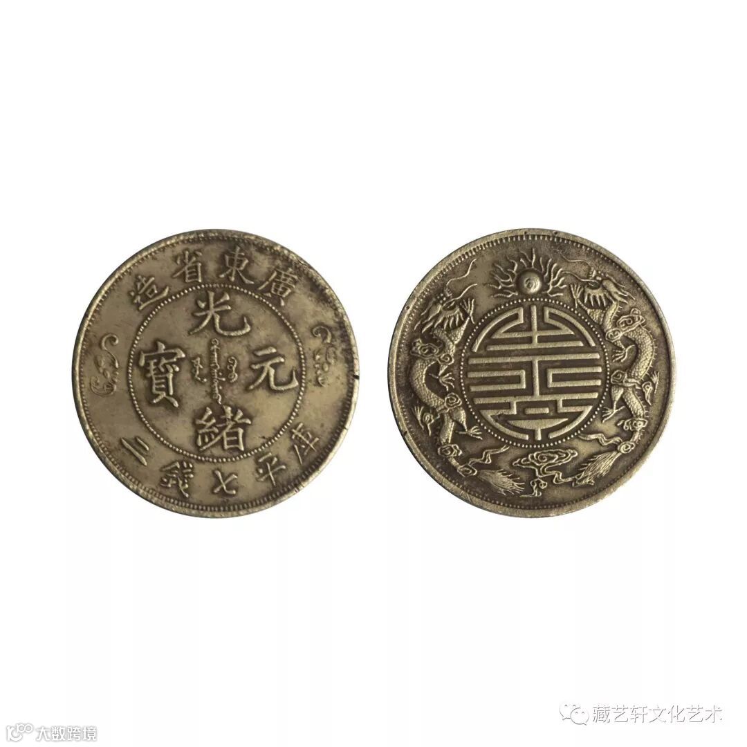 广东省造双龙寿字光绪元宝,铸于光绪三十一年)初,为纪念慈禧七十寿辰而铸。张炯伯在《广东省造银币》一文中写道:“惟本品因未纪年,殊难遽断,然观其图案,谐作福寿,环绕双龙,幕无英文,意含颂祝,大异常制。由此以推,成为纪念币之一种,专铸以祝慈禧太后七旬万寿者也。”