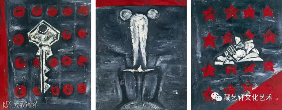 毛旭辉《93家长三联 A》布面油画 137×113cm×3 1993年作