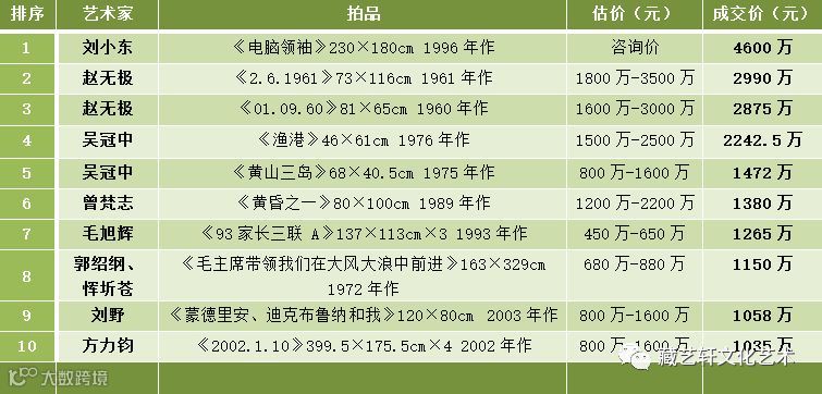 北京保利现当代艺术夜场成交Top10