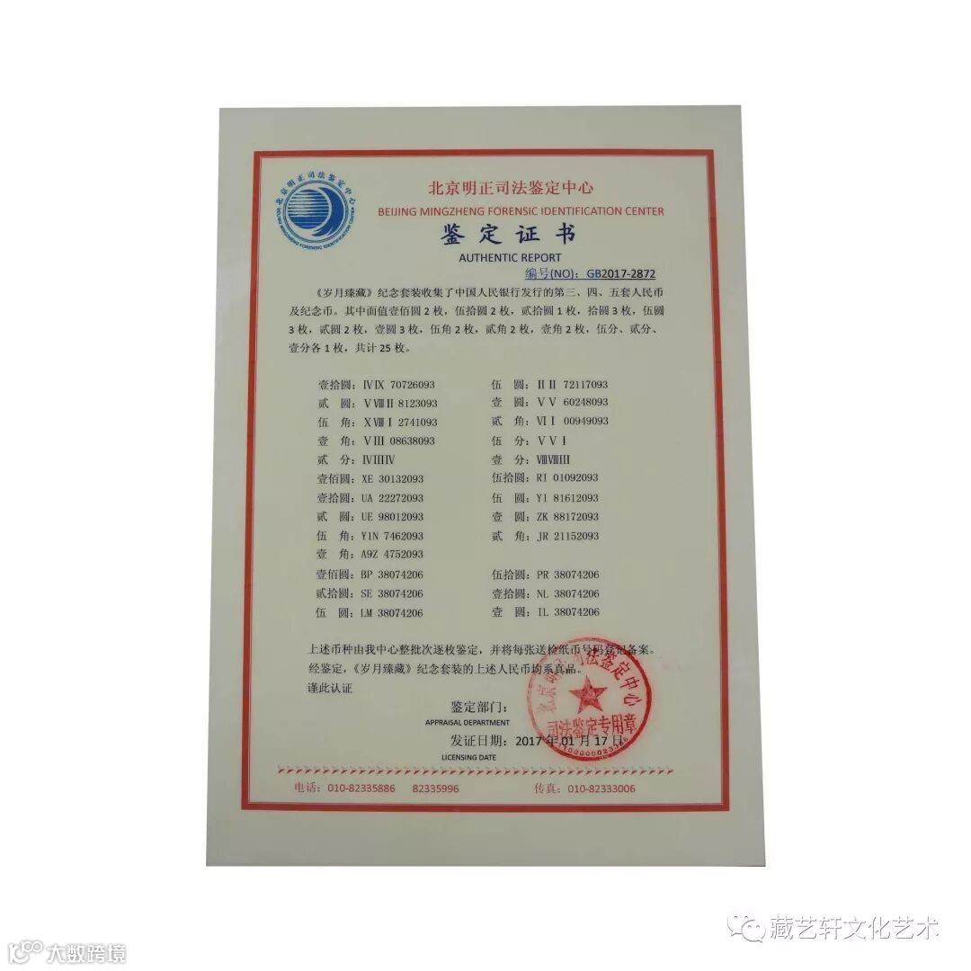 此组藏品集藏了第三、四、五套人民币,其中第三套在流通的岁月中承载了好几代国人的美好回忆与最深刻的情感。不仅代表了中国当时工农业建设的阶段历程,也是我国生产力发展的一个里程碑,更是中国经济发展的见证者。第四套在设计思想、风格和印制工艺上都有一定的创新和突破。主景图案集中体现了在中国共产党领导下,中国各族人民意气风发,团结一致,建设有中国特色的社会主义的主题思想。第五套中国人民银行为适应经济发展和市场货币流通的要求,1999年10月1日,在中华人民共和国建国50周年之际,中国人民银行陆续发行第五套人民币。是一组不可多得收藏馈赠佳品,具备很高的艺术价值与收藏、投资价值。