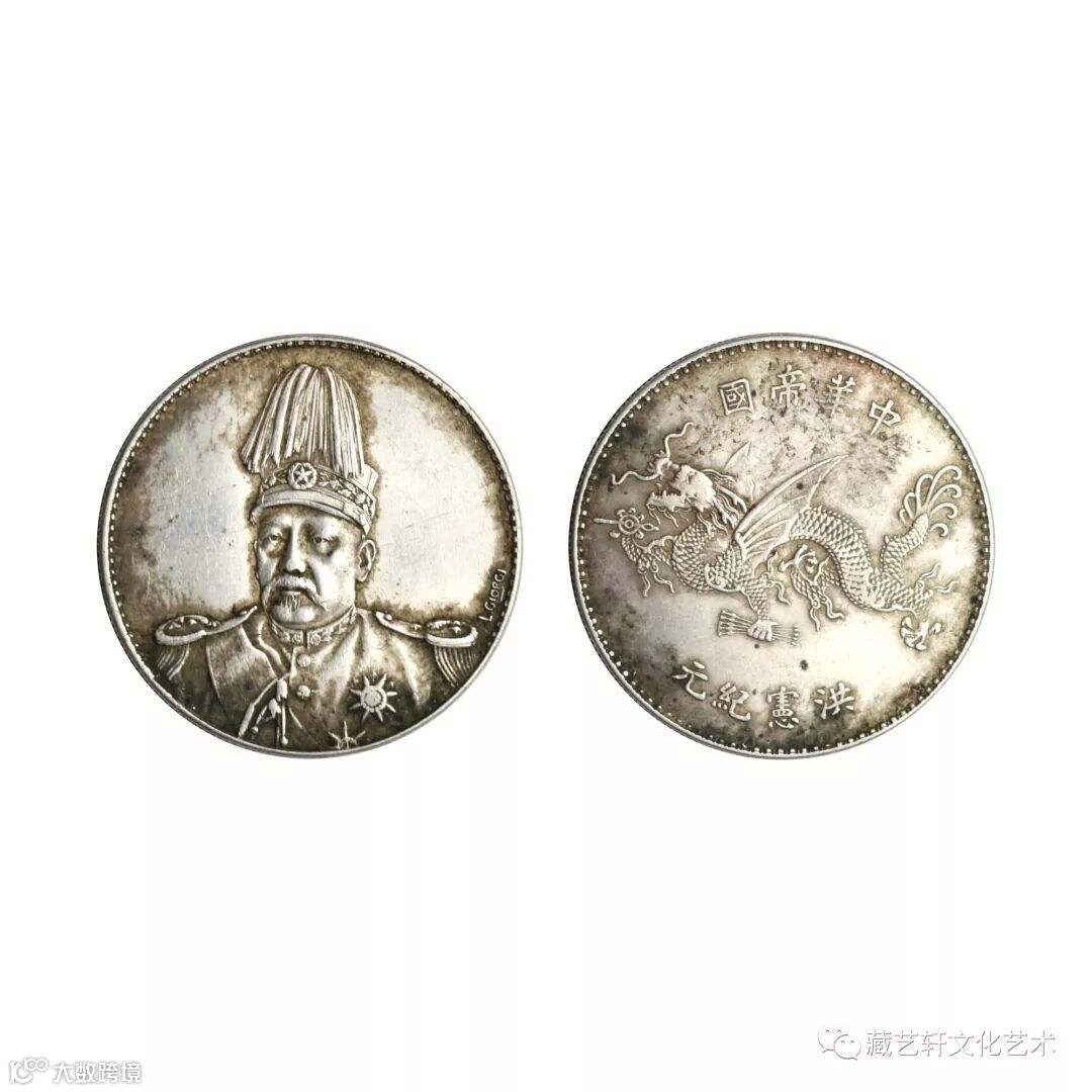 袁世凯飞龙币签字版:银币正面为袁世凯头像,人像五官清晰,栩栩如生,眉目传神。右端有意大利雕刻师L.GIORGI签名。背面镌飞龙图,其飞龙的形态没有采取中国传统龙文形态,而是西方的双翼龙,是中国官方铸币唯一采用的外国龙,龙鳞饱满立体,呼之欲出,刻模深峻。上端镌“中华帝国”四个字,下端镌“洪宪纪元”字样。靓堪称中国近代机制币经典之作,其珍贵程度不可小。