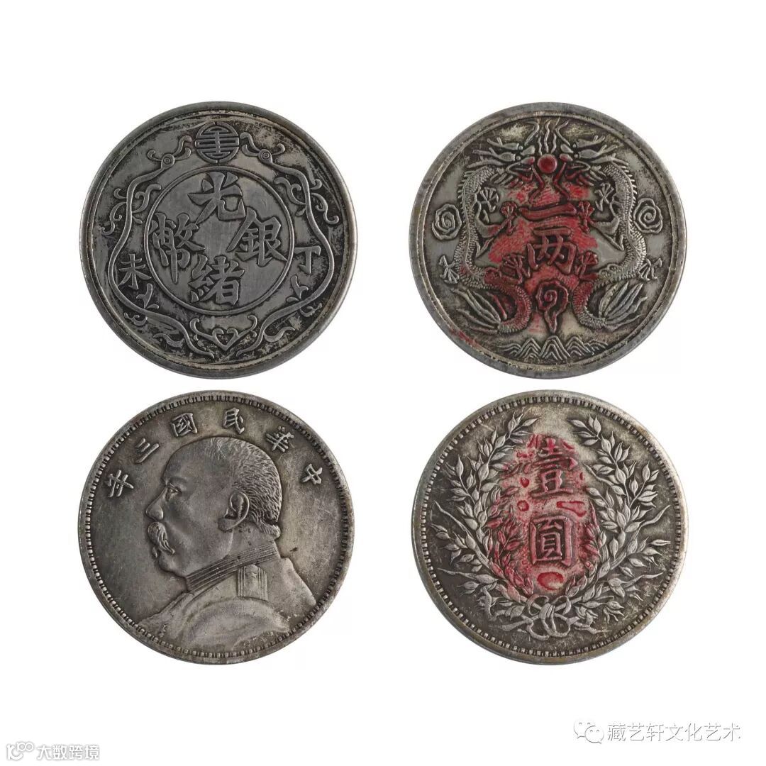 The two sets of coins are Guangxu silver coin Ding Weiwei and Yuan Datou one yuan in the three years of the Republic of China. Guangxu silver coin is one of the standard silver coins of the Qing Dynasty designed and formally minted by the branch of the Qing government. The 33-year branch of Guangxu in Qing Dynasty was minted by Tianjin Mint General Factory. Silver coin front central circle engraved "Guangxu Silver coin" four words, outside the left and right sides of the circle engraved "Dingwei" two words and a pair of Shuanglong opera beads (Shouzi) pattern. On the back of the silver coin, the word "one or two" is engraved in the center, and the two dragons are engraved with the pattern of double dragons playing pearls. On the back and abdomen of the two dragons, three clouds are engraved, and on the bottom, the pattern of waves is engraved.