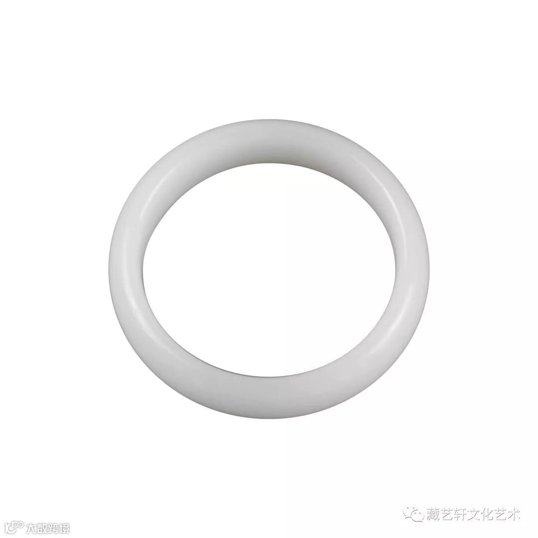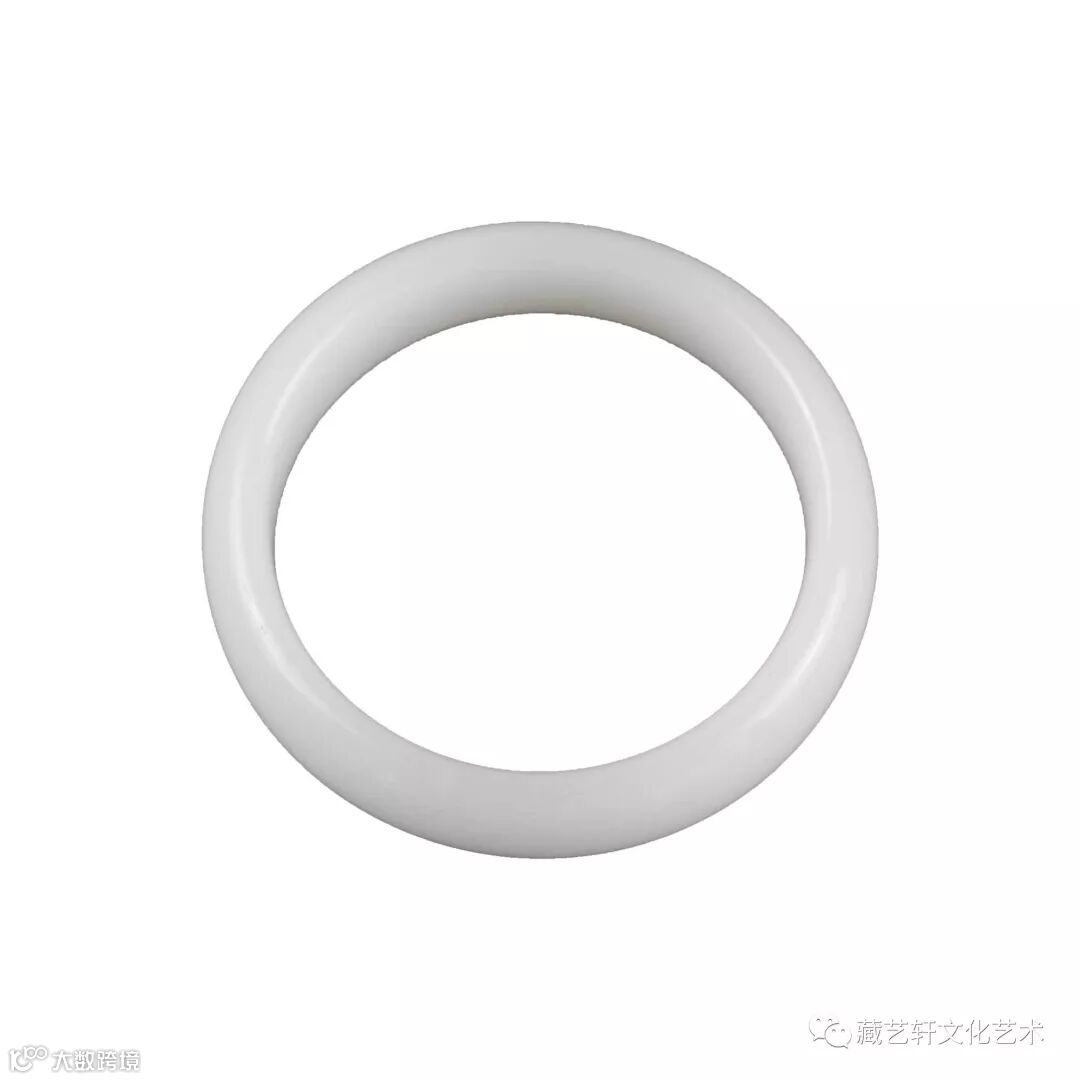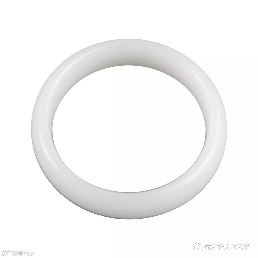 此和田白玉手镯,玉镯呈圆环形,光素无纹,玉细如凝脂,洁白如雪,手摸上去均匀光滑,有润滑感。质地十分细腻温润,表皮呈现油脂光泽,不透明,体现出一种含蓄而内敛的美感。