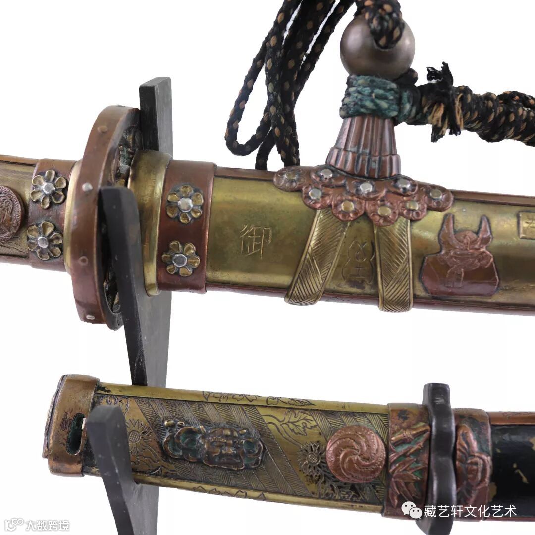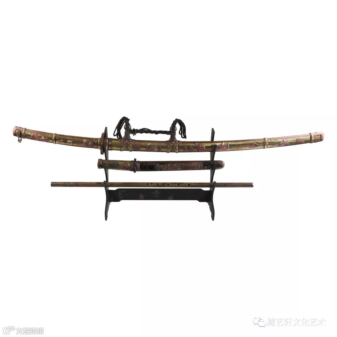 该武士刀是昭和十一年(1936年)由日本帝国裕仁天皇御赏给海军大将高桥三吉的。主刀长度115.5cm。纠错刀长度46.8cm。箫长75.3cm。藏品工艺精湛,身份显耀,具皇家气质,属国宝级精品,加之保存之完整实乃罕见。