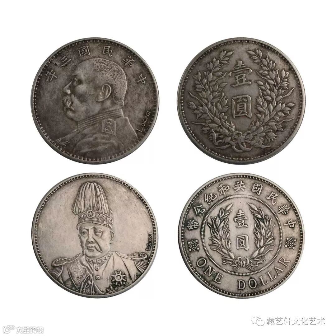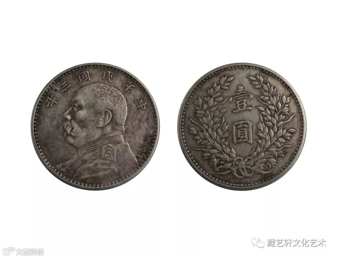 此两枚一组银币,分别为民国三年袁大头英文签字版,中华民国共和国纪念币英文签字版。民国三年袁大头英文签字版正面为袁世凯五分侧面像,上列“中华民国三年”六字,头像右侧有英文“L.GIORGI”字样;背面两条嘉禾,左右交互,下系结带,中铸“壹圆”二字。其边齿细致匀称,规整划一。钱币保存完好,包浆自然,字迹清晰,纹案精美,是不可多得的钱币精品。该币最显著特征就是币的正面袁世凯头像的右侧有英文“L.GIORGI”或简写“L.G”字样,是雕刻师“鲁尔治.乔治”的签名缩写俗称签字袁大头。