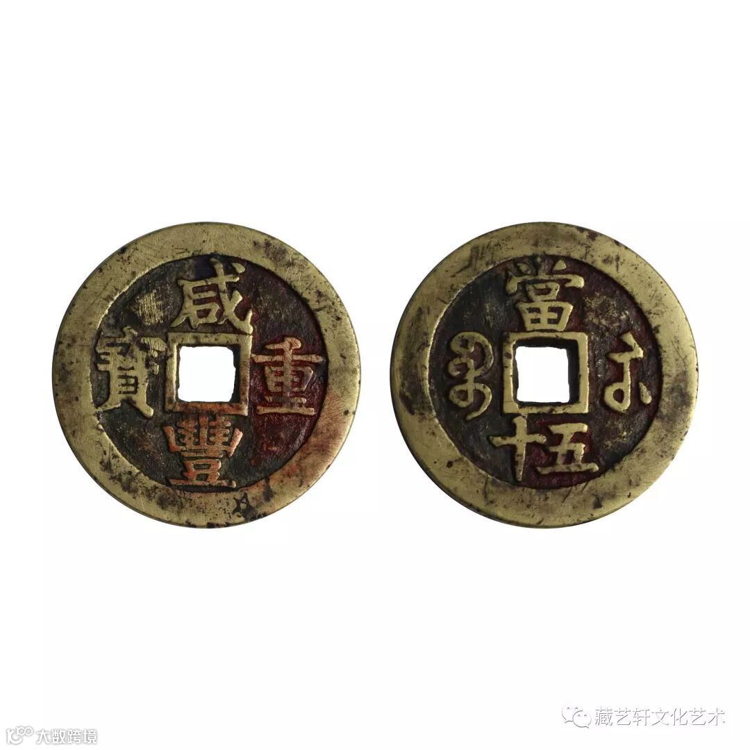 清代咸丰年间,因西方资本主义实力入侵及国内太平天国起义的影响,导致政局危机四伏,财政基本枯竭。清政府为挽救币制行将崩溃之势,而铸造咸丰大钱。当百以下称“重宝”,“咸丰重宝”又可分为当四、当五、当八、当十、当二十、当三十、当四十、当五十,共八等。