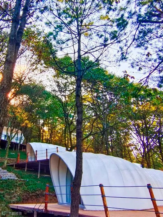 雪宝山营地位于满月镇马营村,海拔在1500-1650米之间,其占地约300亩,这里拥有星空营房、帐篷租赁、露天烤全羊,板栗食坊、娱乐项目等区域,46个各具特色的帐篷错落其中,是雪宝山康养旅游度假区的核心景区。