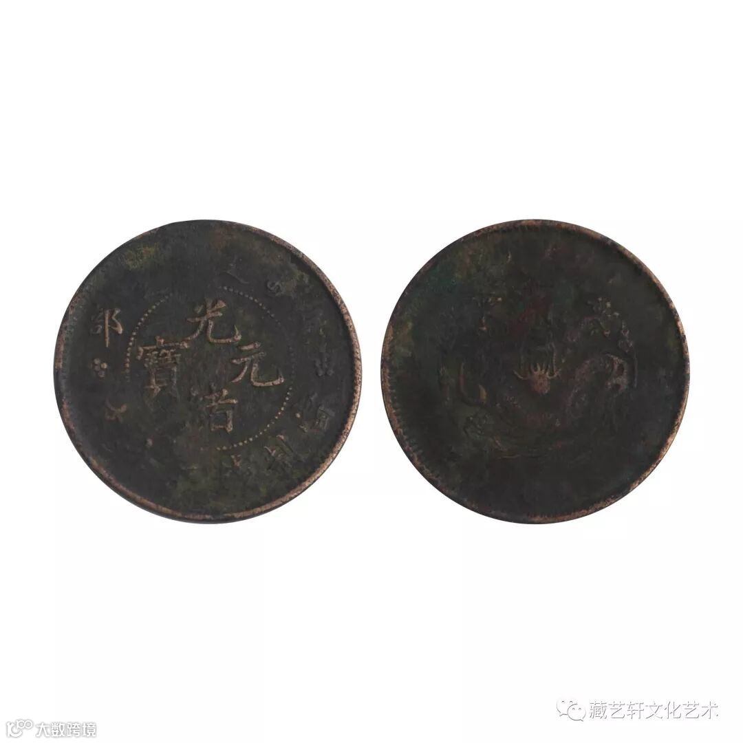 光绪元宝是清朝光绪年间流通的货币之一。由湖北两广总督张之洞率先引进英国铸币机器铸造银元和铜元,之后各省纷纷仿效。此币细看皮壳老化磨损程度到位,铜质古韵熟旧,币面呈现老包浆,品相不太好,尺寸符合,经综合鉴定属于真品。