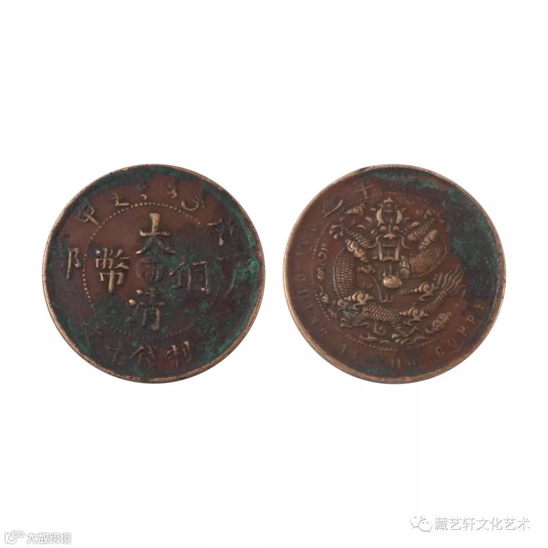大清铜币铸造始于清光绪二十六年,止于宣统三年,流通时间较短。因其版面设计优雅,雕刻精良,且存世量极为稀少,大清铜币光绪年户部造当十被誉为中国近代制币中的十大名誉品之一。