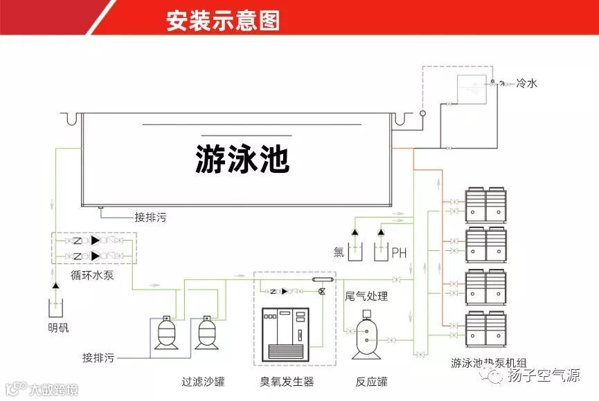 同时,优质的空气能加热恒温循环热泵机组还配备了专为游泳池清洁设计的“三重消毒过滤保护”:消毒及PH值调整系统,对循环入泳池的泳池水进行杀毒,并自动调整PH值至中性;砂缸过滤器,利用特殊的滤沙将泳池水中的微小污物或悬浮颗粒(如头皮屑、灰尘等)进行消除;毛发收集器,过滤泳池水中的毛发或其他固体颗粒,保护后续设备的正常工作。