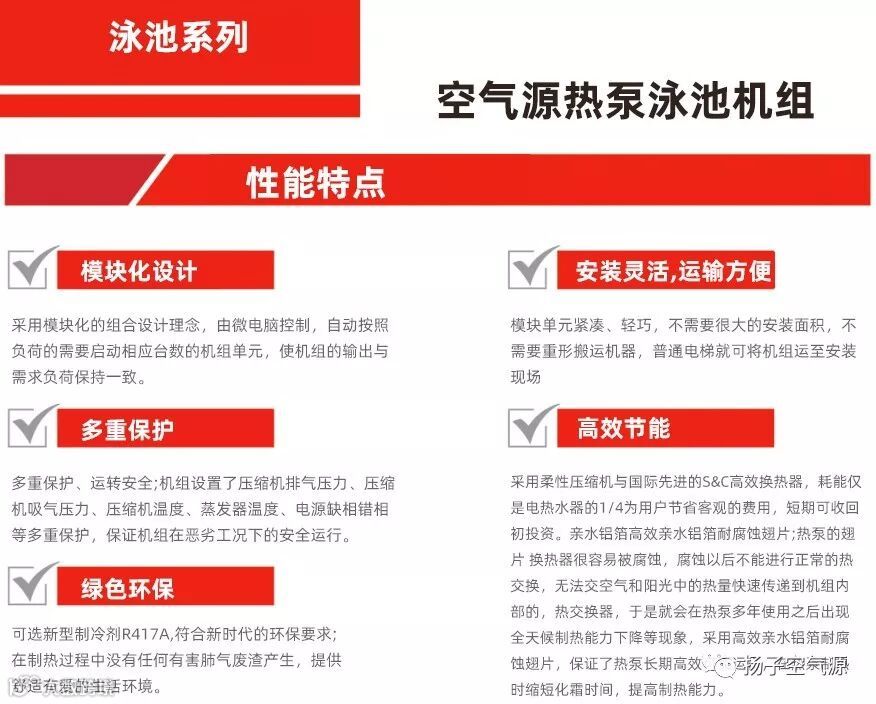 为从根本上杜绝这种情况的再次出现,近年来,越来越多的泳池场所经营者、房企等,在选择空气源热泵泳池恒温设备时,会选择控温能力更好,质量更好的品牌。外界广受好评的空气源热泵泳池恒温系统,节能安全,能效比高,整机可以实现自动控制,无需专人维护,比传统的供热设备节省了人工维护的额外费用。