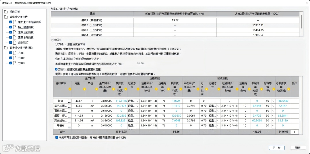 软件覆盖建筑全生命周期碳排放计算: