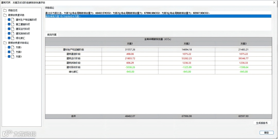 软件可一键生成符合审查要求的《建筑全生命周期碳排放计算分析报告书》《运行阶段碳排放报告》等,极大提升设计效率与合规性。