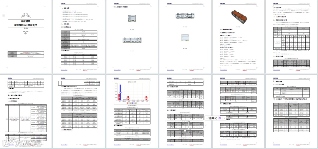 一键生成《零碳建筑预评价基本信息表》;自动出具成套、规范的Word版《碳排放指标计算报告书》。