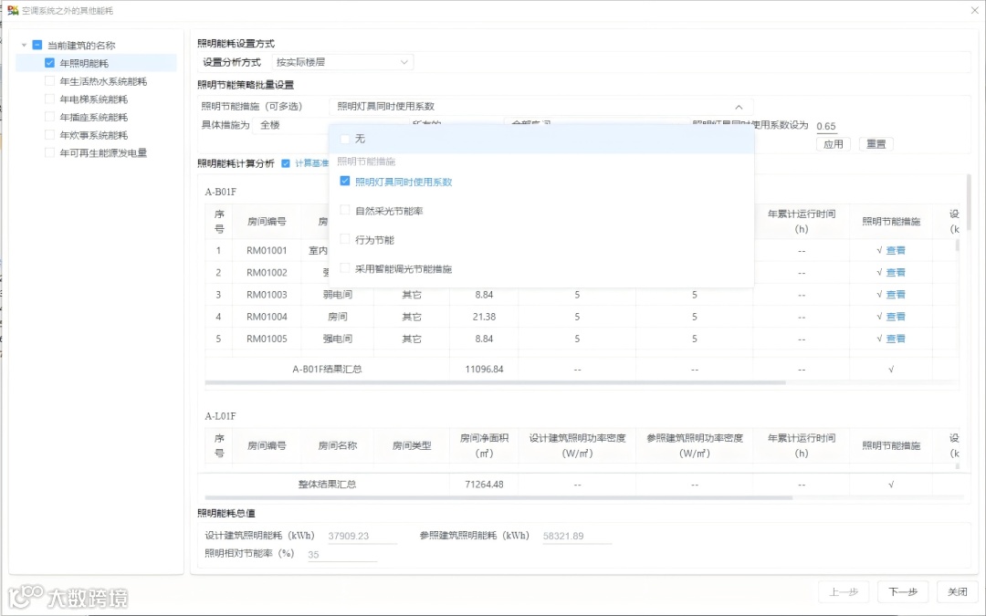 依据标准要求和设计目标、建筑类别、气候分区等相关参数,自动对标判定。