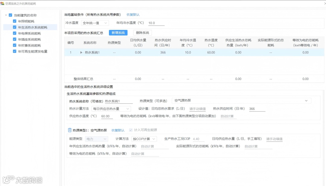 支持直梯/扶梯能耗计算,一键匹配性能三级等级;联动房间类型数据库,照明功率密度智能寻优;引入标准定额计算与附录需热量计算,支持热效率智能换算;支持按水量/系统定额计算,无需手工输入逐月冷水温度。