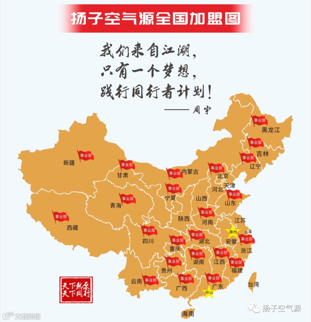 以扬子空气源为主导,借助公司现有的产品、运营团队和技术,以及扬子集团近40年来在业内的专业口碑,品牌效应和资质为平台,在全国各省份打造省级的事业部群,构建覆盖了全国的营销网。