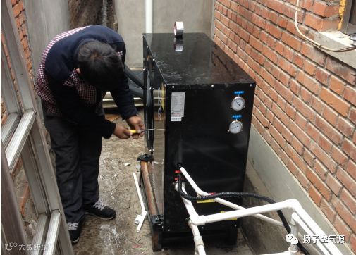 空气源热泵采暖是先吸收空气中的热量,再经过蒸发器汽化后,通过压缩机压缩成高压气体,再进入冷凝器液化,把吸收的热量传输给加热的水中,如此往复,不断吸收低温源的热而输出到所加热的水中,直接达到预定温度。如果主机周围堆有杂物,且距离较近,肯定会影响到换热效果。还要注意的是主机风扇吹出来的是冷风,如果前面有杂物阻挡,会影响到冷风的排散,这样就会导致空气中热量不足,影响到换热效果。所以,风扇正面最好是2米内都不能有阻挡物,太近还可能把冷风送回到主机,那样制热效果就很低了。与这个问题类似的,有人担心冬天室外气温太低,会影响机组运行效率,甚至担心机组被冻坏,因此在外机上覆盖保暖“衣物”,其实这是一种误区,这样会阻挡热泵从空气中获取热能,极易造成覆盖物不小心被风叶带进机器中去,进而影响系统的正常运行。