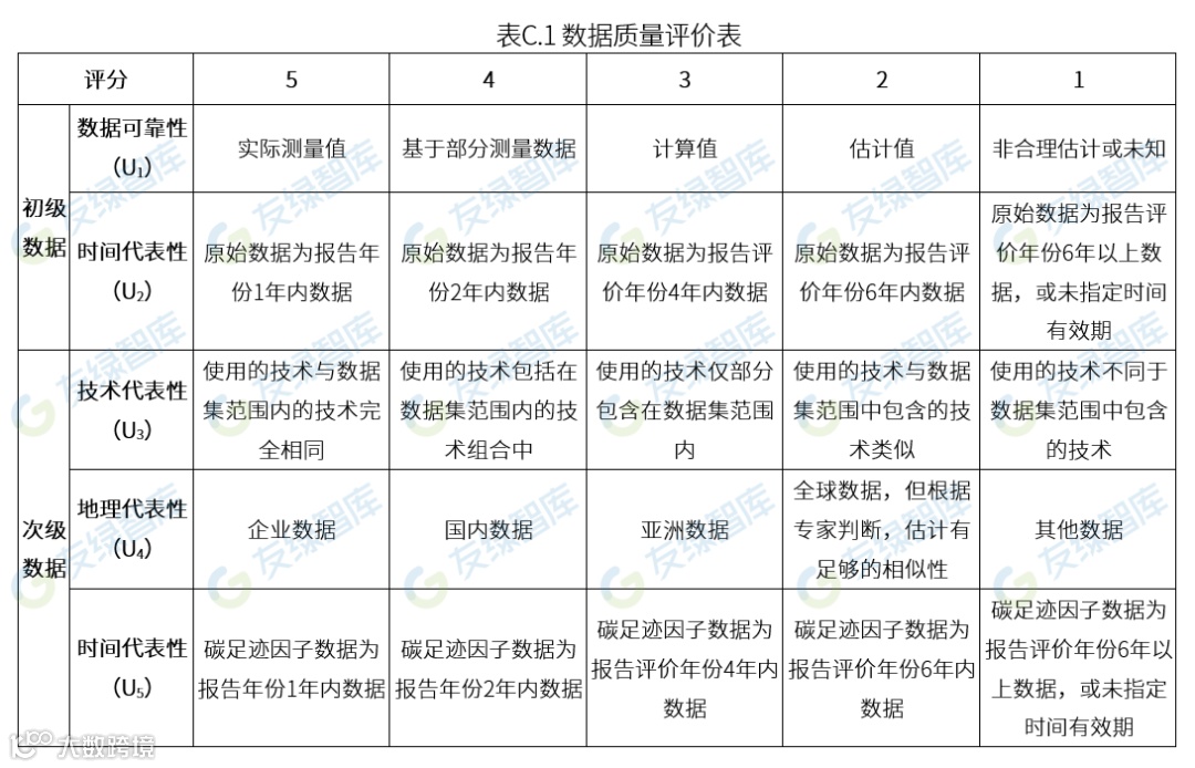 同时,附录C构建了5级分制的数据质量评价体系,从“数据可靠性”“时间代表性”“地理代表性”等维度对数据质量打分。这一要求倒逼企业完善数据管理,为零碳园区获取真实、可靠的设备碳数据提供了保障。