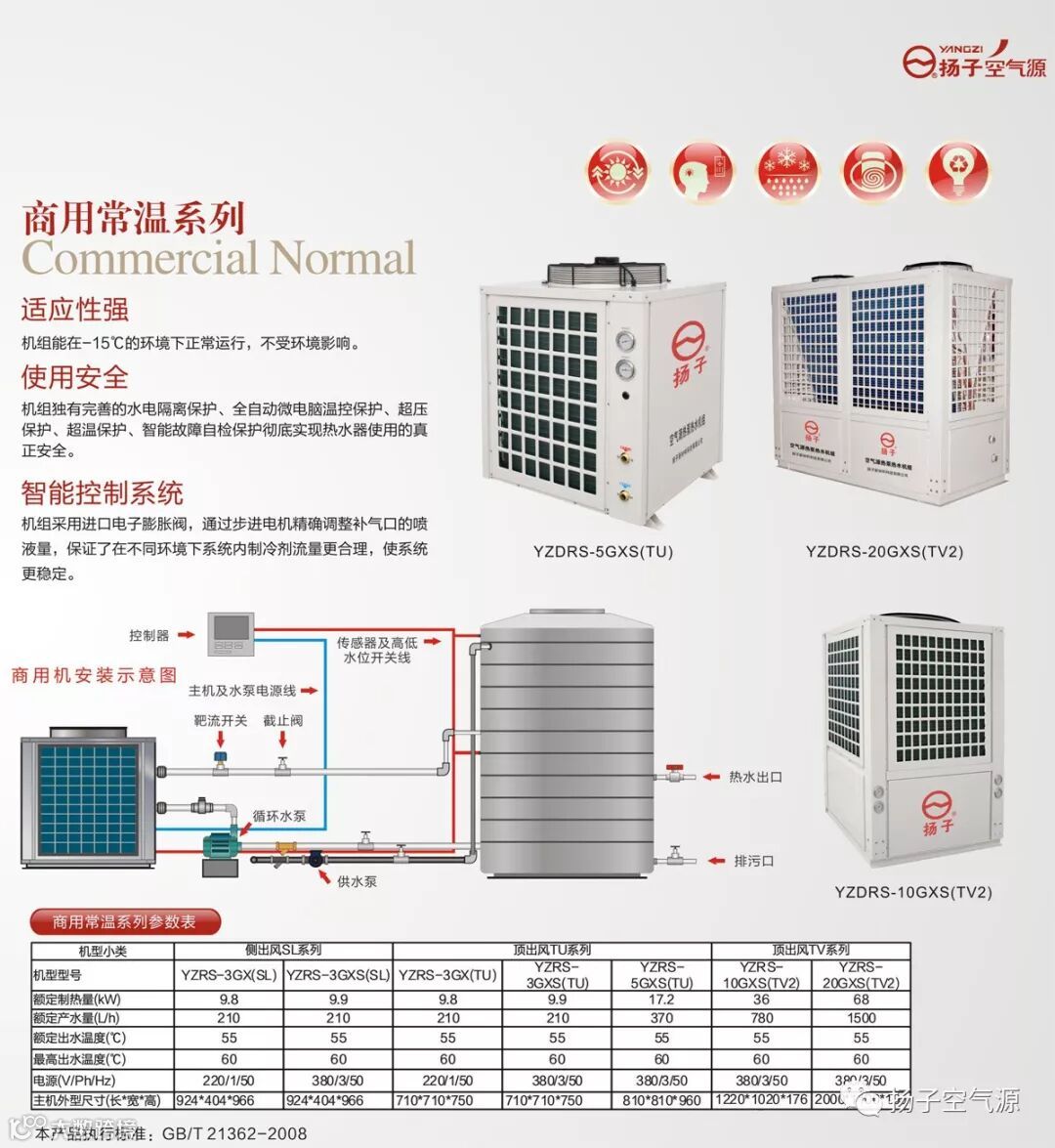 随着空气源热泵安全、节能、环保的优势不断凸显,其在全国的发展势头迅猛,早已经不在仅仅局限于南方,而是在全国范围的工程热水市场得到广泛应用,空气源热泵产业得到快速发展。作为我国空气源行业领军品牌,扬子空气源在经过十几年的市场深耕后,一跃成为大型工程项目商的首选,产品广泛应用于学校、宾馆、酒店、小区、游泳馆、政府单位等大型项目,并受到广大用户的一致称赞。
