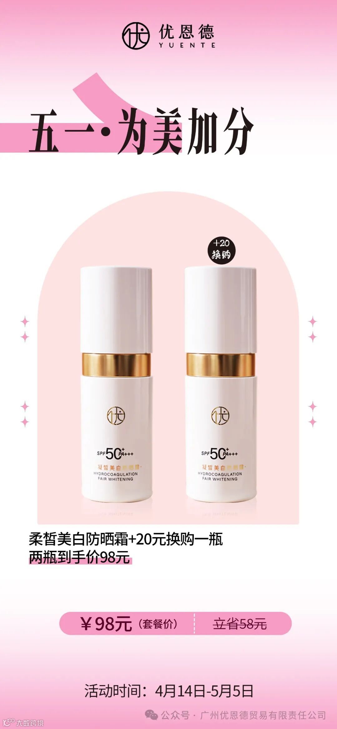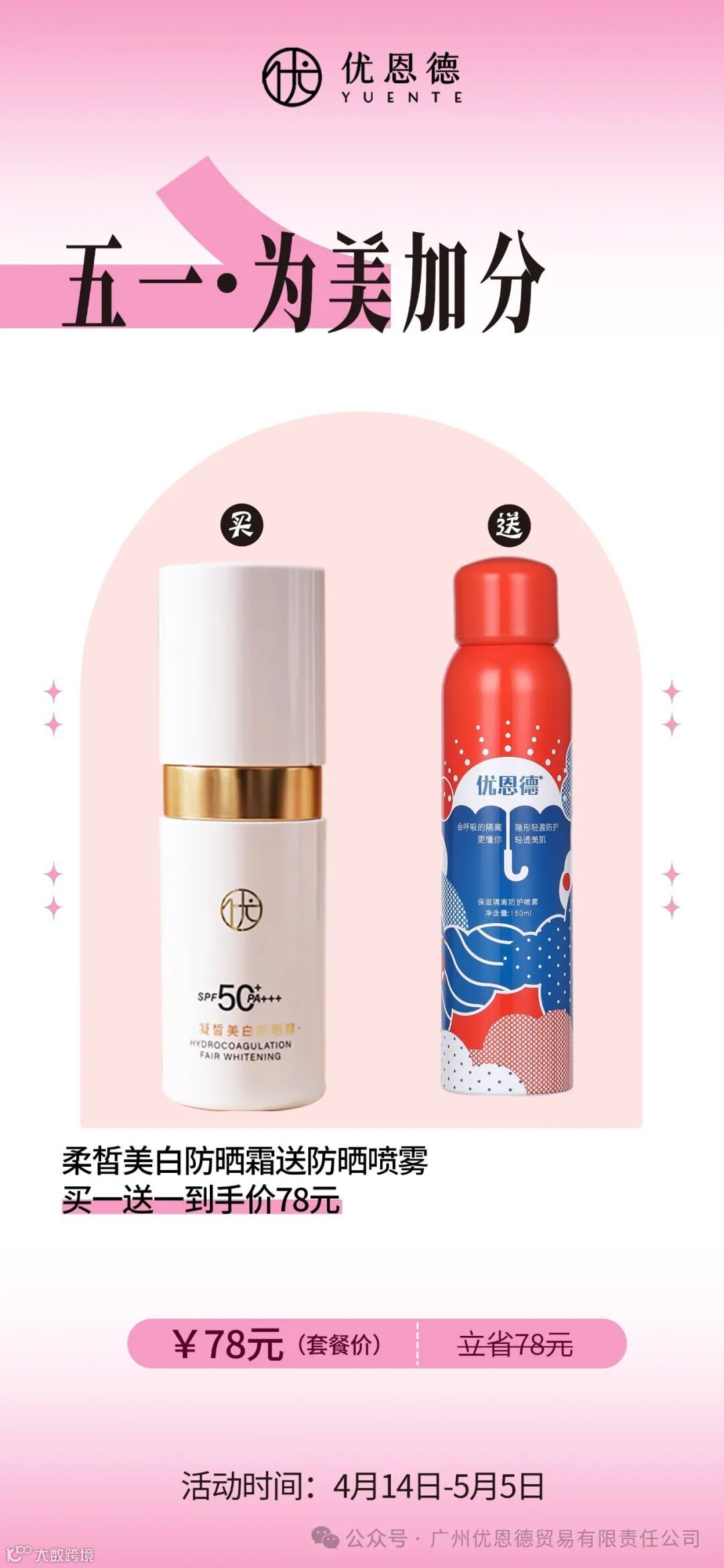 导读:五一欢乐购优恩德柔皙美白防晒喷霜50倍防晒值膏体易推开好成膜新品上市买一大瓶送一大瓶 到手两瓶仅需 98元