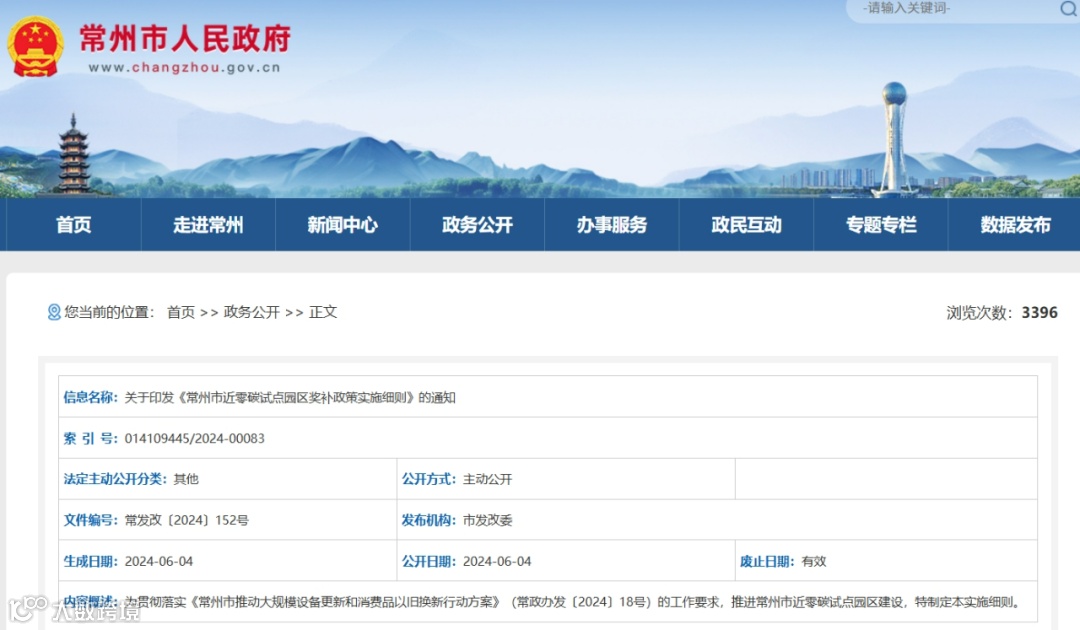 近期,常州市人民政府发布关于印发《常州市近零碳试点园区奖补政策实施细则》的通知,推进常州市近零碳试点园区建设。