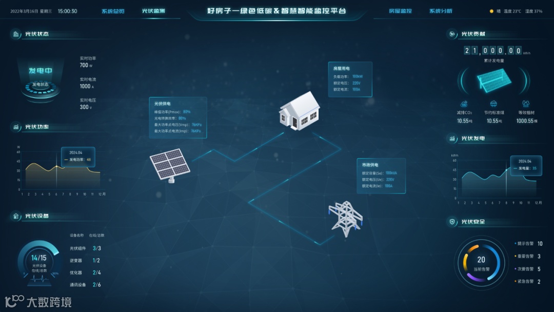 依托住建部好房子项目打造的PKPM 绿色低碳 & 智慧智能监控平台,更以全周期智慧运维能力,成为 “好房子” 长效达标的核心支撑。作为 PKPM 绿建软件体系的重要延伸,该平台深度衔接前期设计阶段的能耗模拟、碳排放计算数据,将光伏设施、地暖系统、智能家居设备互联互通,构建起 “设计达标 - 运营优化” 的闭环体系。
