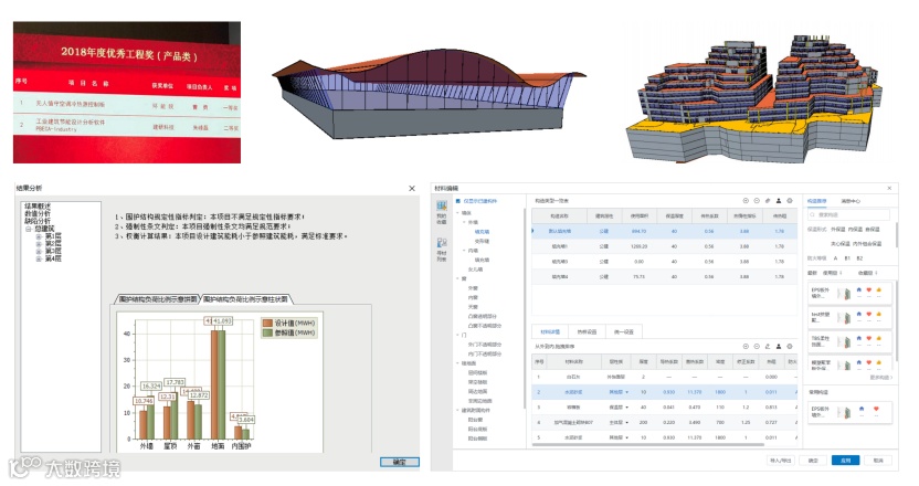 •建筑节能设计分析软件 PKPM-PBECA 支持二维提取、三维导入等快速建模方式,搭载全新材料编辑 + 绿材在线智慧云平台,上百种建筑房间类型与丰富的围护结构材料、构造随心用,多工程批量设置与计算功能让住宅小区、商业组团项目效率翻倍,自动生成 DWG 节能设计专篇与热工提升比例报告书,建模难、计算繁不再是难题。
